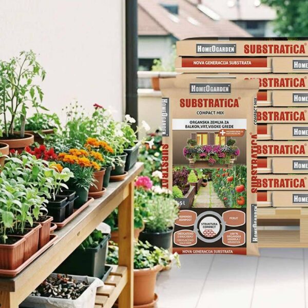 Zemlja za rože Substratica – idealna kompaktna rešitev za balkonske rože.