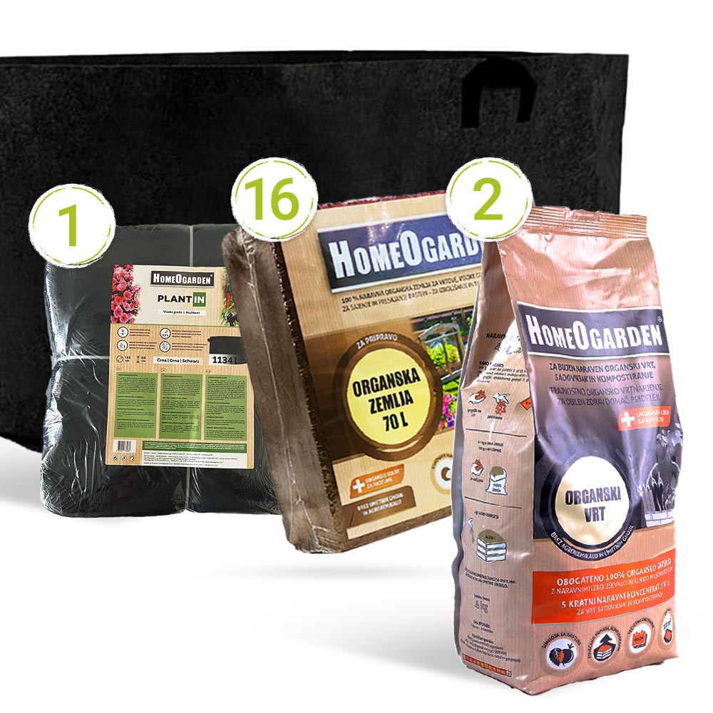 Organsko gnojilo Organski vrt pa z dodano mikorizo in leonarditom zagotavlja obilico hranil ter spodbuja razvoj močnega koreninskega sistema in zagotavlja bogat pridelek.